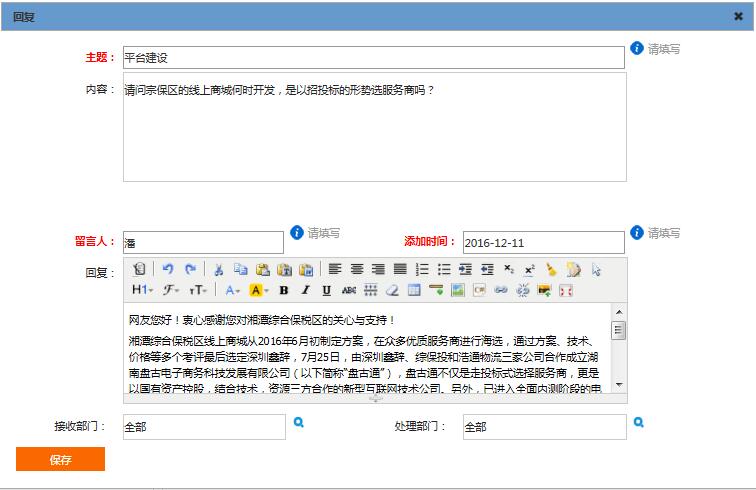 3. 管理員對(duì)把留言推送到對(duì)應(yīng)的處理部門