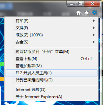 1. 打開IE瀏覽器,點擊右上角的“”,選擇“F12開發(fā)人員工具”,或者打開IE后直接點擊鍵盤的“F12”。