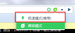 4. 若是360瀏覽器或QQ瀏覽器類似這種帶有IE內(nèi)核和谷歌內(nèi)核的,請按照下圖操作切換到極速模式;因為兼容模式使用的是IE7文檔標準,很多網(wǎng)站會不支持。